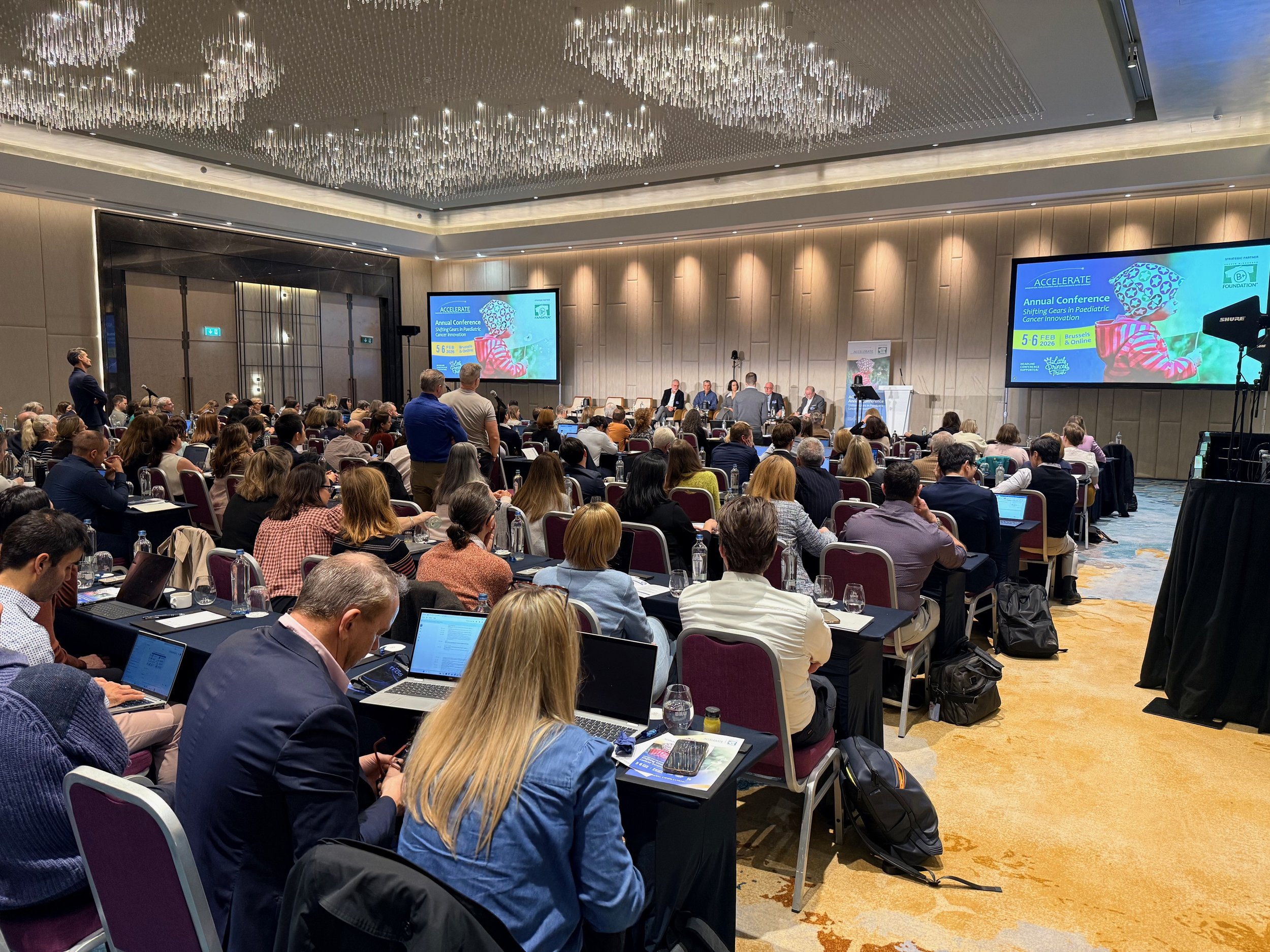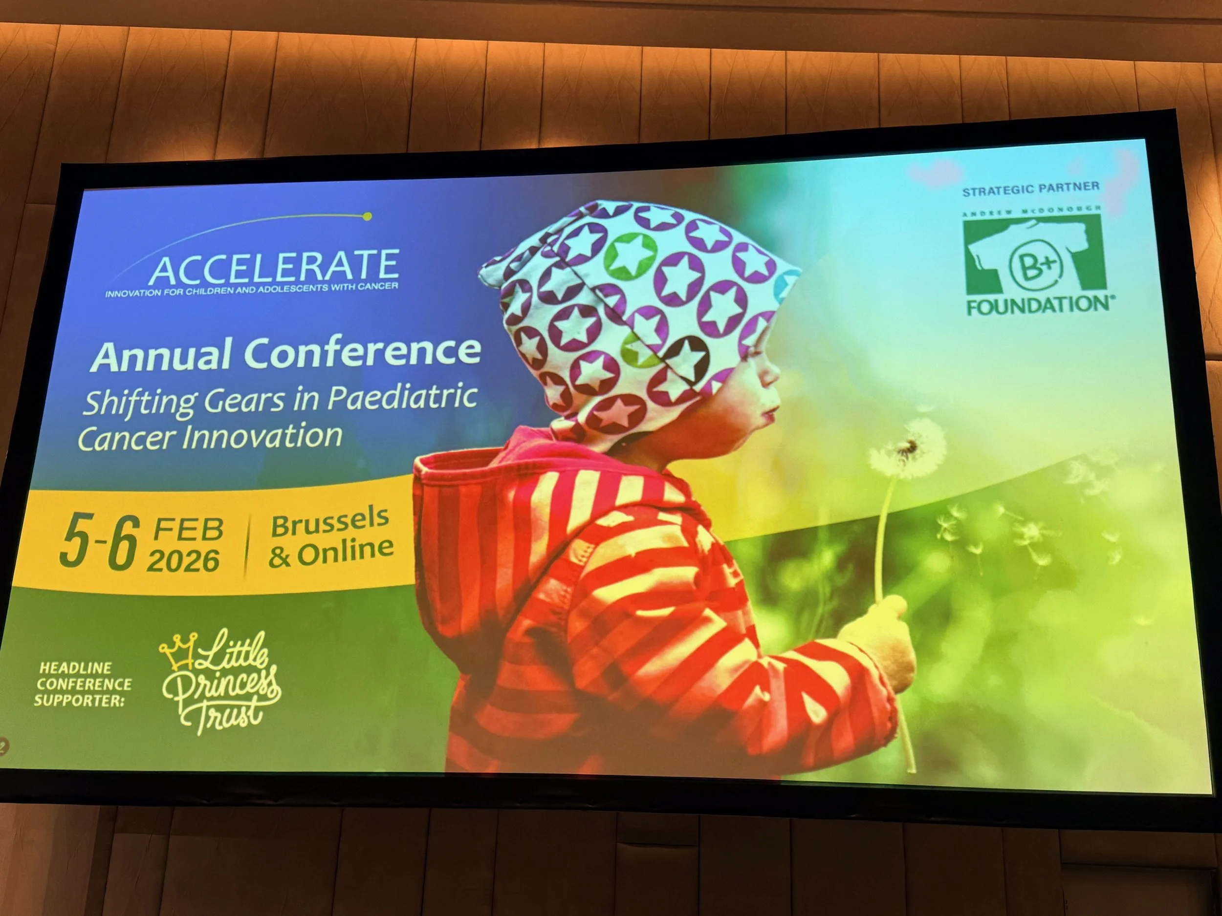 I had the pleasure of attending the ACCELERATE research conference last week in Brussels. As you may recall, The Andrew McDonough B+ Foundation is the primary funder of ACCELERATE. ACCELERATE is a unique, multi-stakeholder organization made up of Academics (investigators), Advocates (charities), Industry (pharma/biotechs), and Regulators (EMA, FDA). We had over 200 attendees from dozens of countries. Making inroads in childhood cancer treatments knows no geographic boundaries and requires collaboration. We are proud to be at the forefront of this.