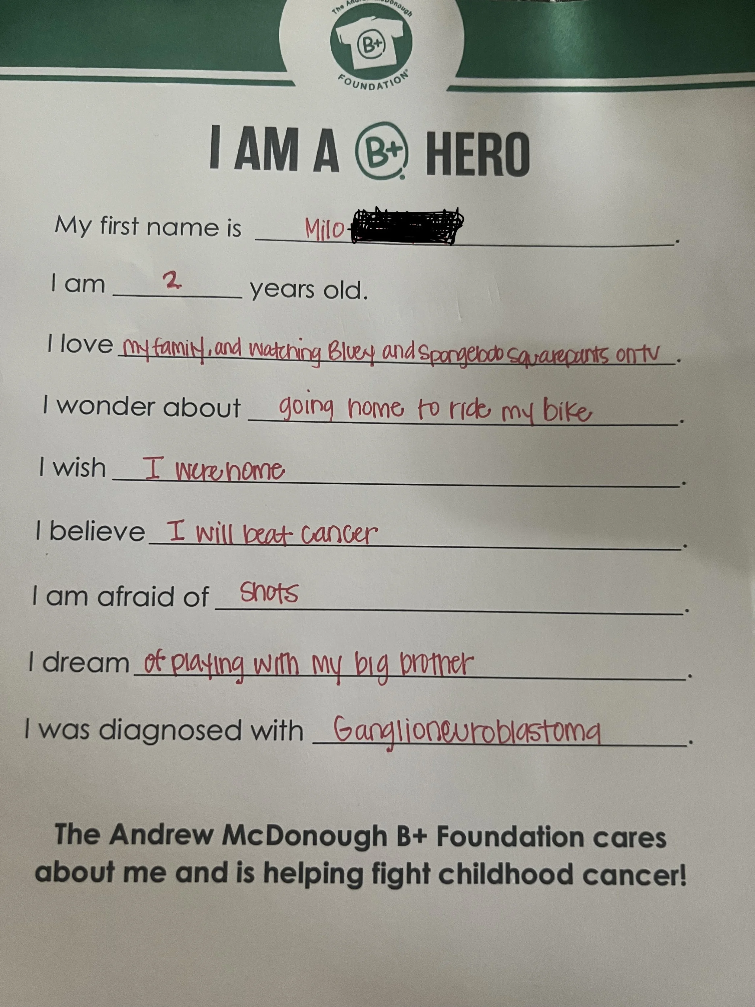 “I would like to extend a heartfelt thank you to the B+ organization for providing me with support while facing this challenge with my son battling cancer. Your generosity not only eases the financial burden, but shows many families that they are not alone in this journey. Thank you for making a difference to many families, including mine!